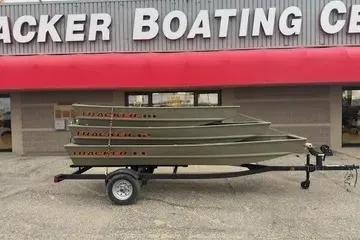 The NEW TRACKER GRIZZLY 15 Jon is a rugged and versatile all-welded aluminum jon boat, suitable for fishing, hunting, or work purposes. Its unitized stringer, transom, and hull ensure a sturdy build and a smooth, dry ride. The boat features a thick .063 aluminum cockpit floor and a 9.5-gallon wet well on the front deck. This hull provides a comfortable ride, and the Forest Green powder-coat finish, along with the SURE TREAD texture on the floor, adds to its durability. Additionally, the TRACKER PROMISE warranty offers peace of mind, making it a reliable choice among aluminum boats.
