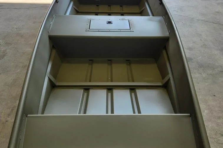 The NEW TRACKER GRIZZLY 15 Jon is a rugged and versatile aluminum jon boat, suitable for fishing, hunting, or work purposes. Its unitized stringer, transom, and hull ensure a sturdy build and a smooth, dry ride. The boat features a thick .063 aluminum cockpit floor and a 9.5-gallon wet well on the front deck. The 7° deadrise Mod V hull provides a comfortable ride, and the Forest Green powder-coat finish, along with the SURE TREAD texture on the floor, adds to its durability. Additionally, the TRACKER PROMISE warranty offers peace of mind, making it a reliable choice among aluminum boats.