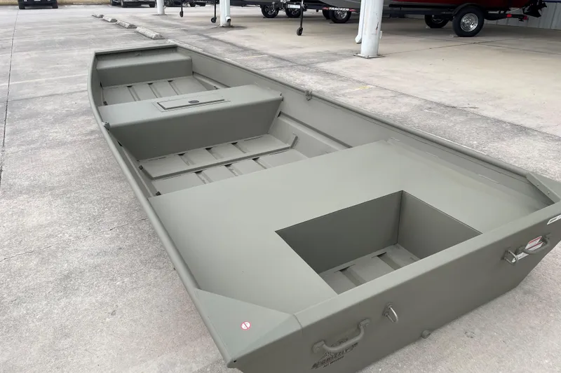 The NEW TRACKER GRIZZLY 15 Jon is a rugged and versatile all-welded aluminum jon boat, suitable for fishing, hunting, or work purposes. Its unitized stringer, transom, and hull ensure a sturdy build and a smooth, dry ride. The boat features a thick .063 aluminum cockpit floor and a 9.5-gallon wet well on the front deck. This hull provides a comfortable ride, and the Forest Green powder-coat finish adds to its durability. Additionally, the TRACKER PROMISE warranty offers peace of mind, making it a reliable choice among aluminum boats.