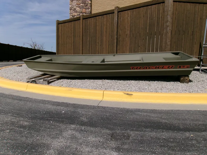 The NEW TRACKER GRIZZLY 1542 Jon is a rugged and versatile aluminum jon boat, suitable for fishing, hunting, or work purposes. Its unitized stringer, transom, and hull ensure a sturdy build and a smooth, dry ride. The boat features a thick .063 aluminum cockpit floor and a 9.5-gallon wet well on the front deck. The 7° deadrise Mod V hull provides a comfortable ride, and the Forest Green powder-coat finish, along with the SURE TREAD texture on the floor, adds to its durability. Additionally, the TRACKER PROMISE warranty offers peace of mind, making it a reliable choice among aluminum boats.