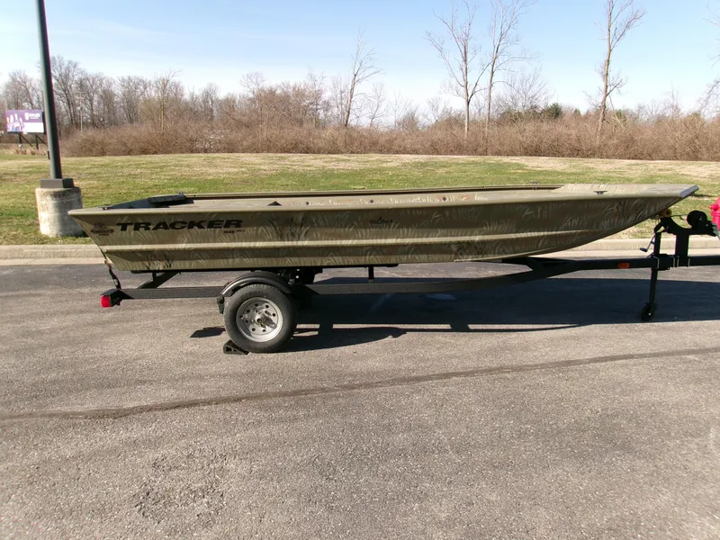 The all-welded TRACKER GRIZZLY 1648 Jon boat is a rugged and adaptable aluminum vessel that can seamlessly transition between fishing, hunting, or working duties with ease. Its unitized stringer, transom, and hull construction ensure a solid and durable build, providing a stable and dry ride in various water conditions. Equipped with a robust .190 aluminum cockpit floor and a spacious front deck featuring a lockable storage compartment, the 1648 offers ample storage and versatility for all your outdoor activities. The 7° deadrise Mod V hull delivers a smooth and dry ride, enhancing your comfort and control on the water. Finished with a distinctive Forest Green powder coat and SURE TREAD texture on the floor, this jon boat combines style with practicality. As with all TRACKER boats, the GRIZZLY 1648 is backed by the reliable TRACKER PROMISE, ensuring the best factory warranty available for aluminum boats. Experience the unmatched performance, versatility, and durability of the Tracker Grizzly 1648 jon boat, designed to tackle any challenge and provide you with endless outdoor adventures with confidence and peace of mind.