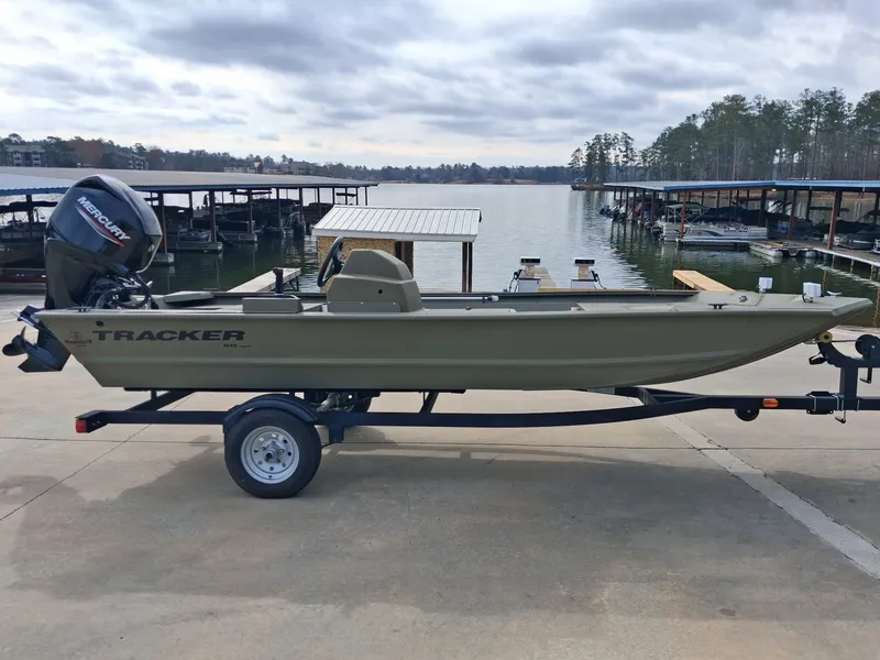 2024 Tracker 1648 Grizzly MVX powered by a 50 mercury. Only 18 hours!! Features include a single axle trailer, prop, cleats, docking lights, head lights, gas tank, fishing rod holders, nav lights, and more. Only $12,995 or payments as low as $129/month. For more information please call us at Central Georgia Marina 478-474-9995 or text us at 478-203-9441.
