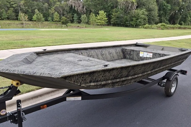 The all-welded TRACKER® GRIZZLY® 1648 Jon is a tough and versatile aluminum jon boat that can easily be adapted for fishing, hunting or working. The unitized stringer, transom and hull provide rock-solid construction and a smooth, dry ride. The 1648 has a thick .190 aluminum cockpit floor plus a big front deck with a lockable storage compartment. The 7° deadrise Mod V hull provides a smooth, dry ride, and it's finished with our exclusive Forest Green powder-coat (as well as SURE TREAD™ texture on the floor). And like all TRACKER boats, it's backed by the TRACKER PROMISE-the best factory warranty in aluminum boats.