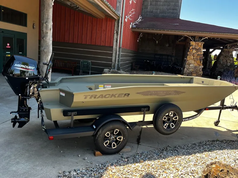 From rivers and bayous to lakes and brakes, the all-new TRACKER 1650 T Prairie Wings Edition is custom-made to get you, your gear, and your buddies to those out-of-the-way honey holes that guarantee you'll get your limit. A no-frills interior provides all the space you need to haul spreads, dog's and your best friend while smooth, reliable, and stealthy Mercury® FourStroke power with an Icebreaker keel gets you there.