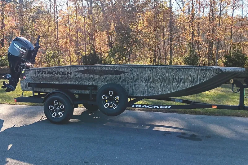 From rivers and bayous to lakes and brakes, the TRACKER 1650 T Prairie Wings Edition is custom-made to get you, your gear, and your buddies to those out-of-the-way honey holes that guarantee you'll get your limit. A no-frills interior provides all the space you need to haul spreads, dog's and your best friend while smooth, reliable, and stealthy Mercury® FourStroke power with an Icebreaker keel gets you there. The cockpit and decks are coated with Sure Tread™ flooring that offers superior grip in any conditions. Bow and stern pedestal seating locations offer versatility while hunting or when underway, and easy-to-reach switching offer simple, reliable control over the boat's functions. Outwardly, the TRACKER 1650 T Prairie Wings edition is covered in your choice of flat green or True Timber® camo finishes, and like all TRACKER boats, it's made with 100% all-welded aluminum for maximum durability. Rear steps add an additional layer of convenience and safety, and VERSATRAK™ mounting channels let you add all manner of accessories for a truly customized killer tiller.