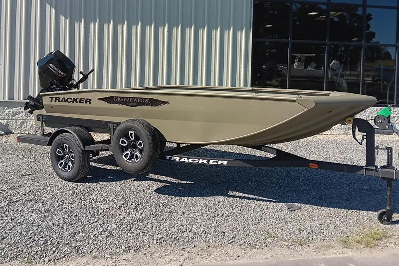 From rivers and bayous to lakes and brakes, the TRACKER 1650 T Prairie Wings Edition is custom-made to get you, your gear, and your buddies to those out-of-the-way honey holes that guarantee you'll get your limit. A no-frills interior provides all the space you need to haul spreads, dog's and your best friend while smooth, reliable, and stealthy Mercury® FourStroke power with an Icebreaker keel gets you there. The cockpit and decks are coated with Sure Tread™ flooring that offers superior grip in any conditions. Bow and stern pedestal seating locations offer versatility while hunting or when underway, and easy-to-reach switching offer simple, reliable control over the boat's functions. Outwardly, the TRACKER 1650 T Prairie Wings edition is covered in your choice of flat green or True Timber® camo finishes, and like all TRACKER boats, it's made with 100% all-welded aluminum for maximum durability. Rear steps add an additional layer of convenience and safety, and VERSATRAK™ mounting channels let you add all manner of accessories for a truly customized killer tiller.