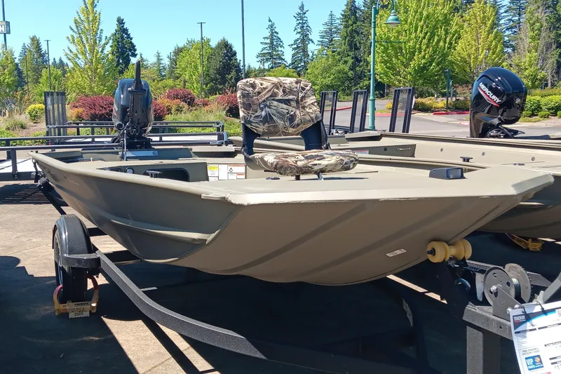 Meet the TRACKER® GRIZZLY® 1654 T Sportsman, a rugged and versatile duck-hunting vessel built to withstand the demands of waterfowling adventures. This specialized boat features an optimized layout, including a lockable bow deck storage compartment, a port rod/gear box, and a lockable, removable starboard gun box, providing the functionality and convenience essential for successful hunts on the water. The GRIZZLY 1654 T Sportsman is constructed with a unitized, all-welded stringer, transom, and Mod V hull, ensuring exceptional durability and a smooth, dry ride even in challenging conditions. The integrated transom sponsons further enhance the boat's performance in shallow waters, allowing you to navigate effortlessly through various terrains. Finished with our exclusive Forest Green powder-coat finish, this all-aluminum vessel exudes quality and resilience. Additionally, optional Grassland or Woodland camo patterns are available for those seeking a customized look to blend into their surroundings. Just like every GRIZZLY model, the 1654 T Sportsman is backed by the TRACKER PROMISE, providing you with the best factory warranty in the realm of aluminum boats. With its robust construction, specialized features, and reliable warranty, the GRIZZLY 1654 T Sportsman stands as the ultimate waterfowl-hunting machine, ready to elevate your hunting experiences on the water.
