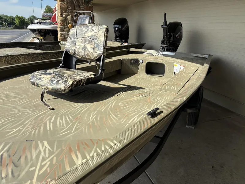 Meet the TRACKER® GRIZZLY® 1654 T Sportsman, a rugged and versatile duck-hunting vessel built to withstand the demands of waterfowling adventures. This specialized boat features an optimized layout, including a lockable bow deck storage compartment, a port rod/gear box, and a lockable, removable starboard gun box, providing the functionality and convenience essential for successful hunts on the water. The GRIZZLY 1654 T Sportsman is constructed with a unitized, all-welded stringer, transom, and Mod V hull, ensuring exceptional durability and a smooth, dry ride even in challenging conditions. The integrated transom sponsons further enhance the boat's performance in shallow waters, allowing you to navigate effortlessly through various terrains. Finished with our exclusive Forest Green powder-coat finish, this all-aluminum vessel exudes quality and resilience. Additionally, optional Grassland or Woodland camo patterns are available for those seeking a customized look to blend into their surroundings. Just like every GRIZZLY model, the 1654 T Sportsman is backed by the TRACKER PROMISE, providing you with the best factory warranty in the realm of aluminum boats. With its robust construction, specialized features, and reliable warranty, the GRIZZLY 1654 T Sportsman stands as the ultimate waterfowl-hunting machine, ready to elevate your hunting experiences on the water.