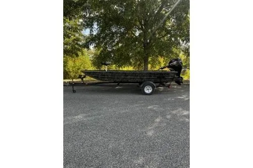 Meet the TRACKER® GRIZZLY® 1654 T Sportsman, a rugged and versatile duck-hunting vessel built to withstand the demands of waterfowling adventures. This specialized boat features an optimized layout, including a lockable bow deck storage compartment, a port rod/gear box, and a lockable, removable starboard gun box, providing the functionality and convenience essential for successful hunts on the water. The GRIZZLY 1654 T Sportsman is constructed with a unitized, all-welded stringer, transom, and Mod V hull, ensuring exceptional durability and a smooth, dry ride even in challenging conditions. The integrated transom sponsons further enhance the boat's performance in shallow waters, allowing you to navigate effortlessly through various terrains. Finished with our exclusive Forest Green powder-coat finish, this all-aluminum vessel exudes quality and resilience. Additionally, optional Grassland or Woodland camo patterns are available for those seeking a customized look to blend into their surroundings. Just like every GRIZZLY model, the 1654 T Sportsman is backed by the TRACKER PROMISE, providing you with the best factory warranty in the realm of aluminum boats. With its robust construction, specialized features, and reliable warranty, the GRIZZLY 1654 T Sportsman stands as the ultimate waterfowl-hunting machine, ready to elevate your hunting experiences on the water.