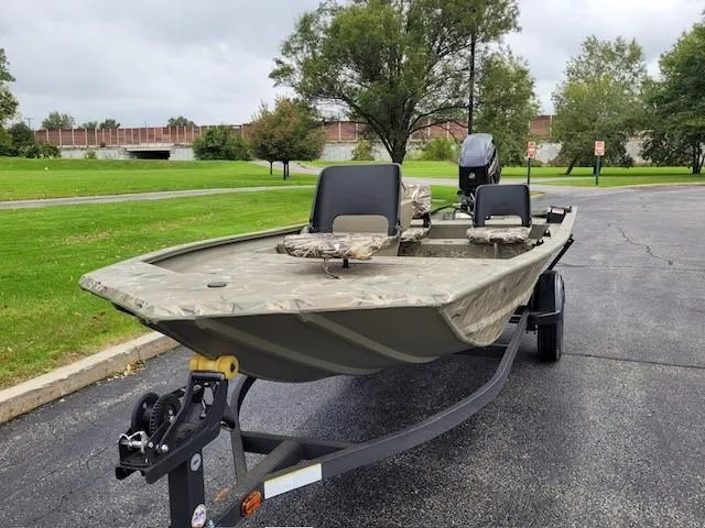 At 17' 1" and 6' 6" wide, the TRACKER® GRIZZLY® 1754 SC is a spacious and stable aluminum jon boat that can be powered by up to a 75HP motor. This versatile boat sports a lockable bow deck storage compartment, 7° deadrise for a smooth, dry ride, solid .190 aluminum floor and welded-in, foam-filled sides for added structural integrity and reduced hull noise.