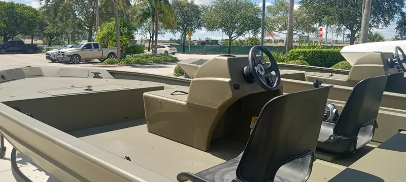 At 17' 1" and 6' 6" wide, the TRACKER® GRIZZLY® 1754 SC is a spacious and stable aluminum jon boat that can be powered by up to a 75HP motor. This versatile boat sports a lockable bow deck storage compartment, 7° deadrise for a smooth, dry ride, solid .190 aluminum floor and welded-in, foam-filled sides for added structural integrity and reduced hull noise.