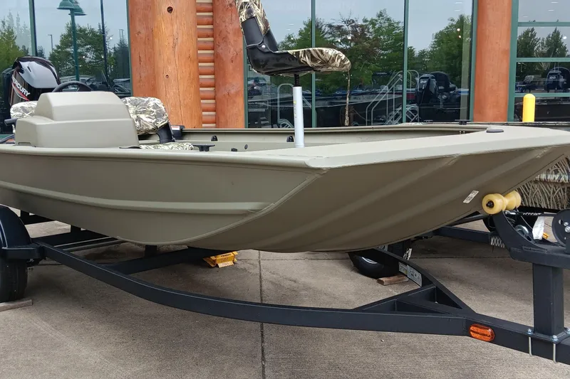 Step aboard the TRACKER® GRIZZLY® 1754 SC, a roomy and steady aluminum jon boat measuring 17' 1" in length and 6' 6" wide, offering ample space for your fishing or recreational outings. Capable of accommodating up to a 75HP motor, this versatile boat is equipped with a lockable bow deck storage compartment, ensuring that your gear stays secure and organized during your adventures on the water. The 1754 SC features a 7° deadrise hull design, providing a smooth and dry ride even in choppy waters. With a solid .190 aluminum floor and welded-in, foam-filled sides, this boat offers increased structural integrity and reduced hull noise, enhancing your overall boating experience. The fully welded hull, unitized to the all-aluminum box-beam transom via the full-length longitudinal stringer system, ensures exceptional durability and reliability in various water conditions. Backed by the TRACKER PROMISE, the GRIZZLY 1754 SC offers the best factory warranty in aluminum boats, providing you with the assurance and confidence to enjoy your time on the water worry-free. Experience the power, versatility, and dependability of the TRACKER GRIZZLY 1754 SC, your ideal companion for exciting and memorable boating experiences.