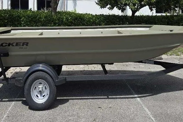 Introducing the all-welded TRACKER® GRIZZLY® 1754 Jon boat, a rugged and versatile aluminum vessel designed for both fishing and utility purposes. Measuring 17' 1" in length with a spacious 6' 6" beam, this boat offers ample space and comfort for all your outdoor adventures. Featuring a large bow deck with a lockable compartment, the 1754 Jon is not only spacious but also stable, making it an ideal choice for hunting, fishing, or bowfishing excursions. Equipped with a robust .190 aluminum cockpit floor and a textured SURE TREAD™ surface covering the entire cockpit and deck floors, the 1754 Jon ensures a secure and non-slip surface for added safety. The 7° deadrise Mod V hull guarantees a smooth and dry ride, enhancing your overall boating experience. Finished with a Forest Green powder coat, this jon boat combines durability with style, ready to tackle any water conditions with ease. As with all TRACKER boats, the GRIZZLY 1754 is supported by the reliable TRACKER PROMISE, offering the best factory warranty in the realm of aluminum boats. Experience the durability, versatility, and performance of the TRACKER GRIZZLY 1754 Jon boat, your trusted companion for various outdoor activities and adventures on the water.