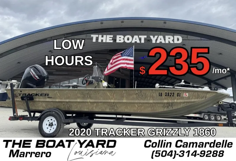 2020 Tracker Grizzly 1860Mercury 90 4 StrokeSingle Axle trailerOFFSITE - CALL FOR AVAILABILITY!***FINANCING AVAILABLE***Trade Ins Accepted$19,99510%DOWN $235/MONTH (WITH APPROVED CREDIT)*Contact Collin for more info 504-314-9288SPECIFICATIONSLength-19' 2''Beam-7'Bottom Width-5'Max. Recommended HP-90 HPFuel Capacity-19.2 gal.Max. Person Capacity-7 personsMax. Person Weight-940 lbs.Max. Person, Motor & Gear Weight-1500 lbs.Interior Depth-16.75''Length-19' 2''Beam-7'Bottom Width-5'Max. Recommended HP-90 HPFuel Capacity-19.2 gal.Max. Person Capacity-7 personsMax. Person Weight-940 lbs.Max. Person, Motor & Gear Weight-1500 lbs.Interior Depth-16.75''OFFSITE-CALL FOR AVAILABILITY!