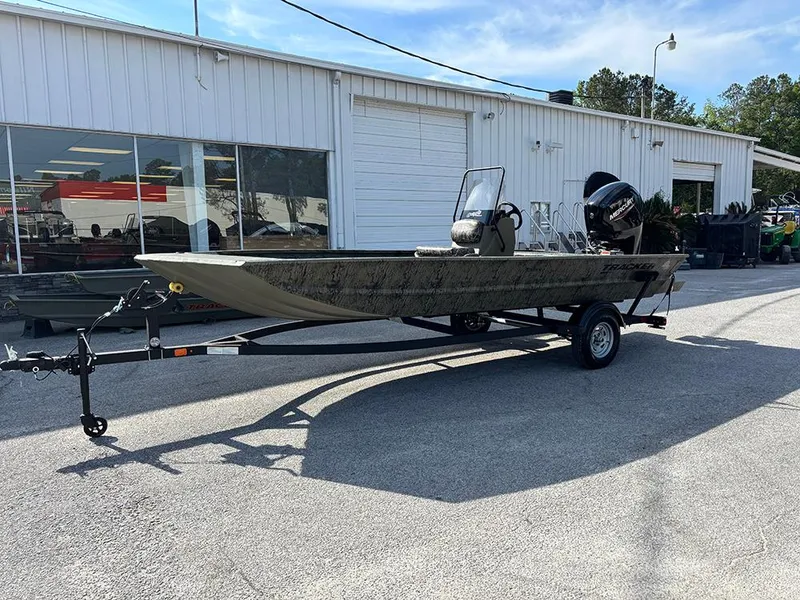 Venture into the unknown with the TRACKER GRIZZLY 1860 CC, a robust and versatile all-purpose jon boat designed to conquer various water environments, from rivers to lakes to bays. With its durable, all-welded construction, this boat is equipped to handle any adventure you throw its way. The innovative center-console design not only provides 360° fishability but also offers enhanced visibility for the driver, crucial for navigating through shallow waters cluttered with stumps and rocks. Whether you're casting a line or cruising the waters, the decks and floors of the 1860 CC are equipped with our textured SURE TREAD™ coating, ensuring a secure and non-skid surface for your safety and comfort. The unitized stringer, transom, and Mod V hull construction of this boat guarantee a solid and stable ride, delivering an experience that is both smooth and dry. Finished with our exclusive Forest Green powder-coat finish, the GRIZZLY 1860 CC not only looks sleek but also offers superior protection against corrosion and wear. For those looking to personalize their vessel further, optional TrueTimber patterns and a Marine Mat kit are available, allowing you to tailor your boat to your preferences and style. With the added assurance of the TRACKER PROMISE, featuring the best factory warranty in aluminum boats, the GRIZZLY 1860 CC is a reliable and dependable choice for all your boating adventures.