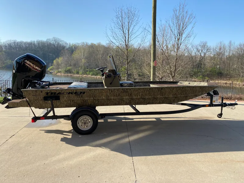 Venture into the unknown with the TRACKER® GRIZZLY® 1860 CC, a robust and versatile all-purpose jon boat designed to conquer various water environments, from rivers to lakes to bays. With its durable, all-welded construction, this boat is equipped to handle any adventure you throw its way. The innovative center-console design not only provides 360° fishability but also offers enhanced visibility for the driver, crucial for navigating through shallow waters cluttered with stumps and rocks. Whether you're casting a line or cruising the waters, the decks and floors of the 1860 CC are equipped with our textured SURE TREAD™ coating, ensuring a secure and non-skid surface for your safety and comfort. The unitized stringer, transom, and Mod V hull construction of this boat guarantee a solid and stable ride, delivering an experience that is both smooth and dry. Finished with our exclusive Forest Green powder-coat finish, the GRIZZLY 1860 CC not only looks sleek but also offers superior protection against corrosion and wear. For those looking to personalize their vessel further, optional TrueTimber patterns and a Marine Mat kit are available, allowing you to tailor your boat to your preferences and style. With the added assurance of the TRACKER PROMISE, featuring the best factory warranty in aluminum boats, the GRIZZLY 1860 CC is a reliable and dependable choice for all your boating adventures.