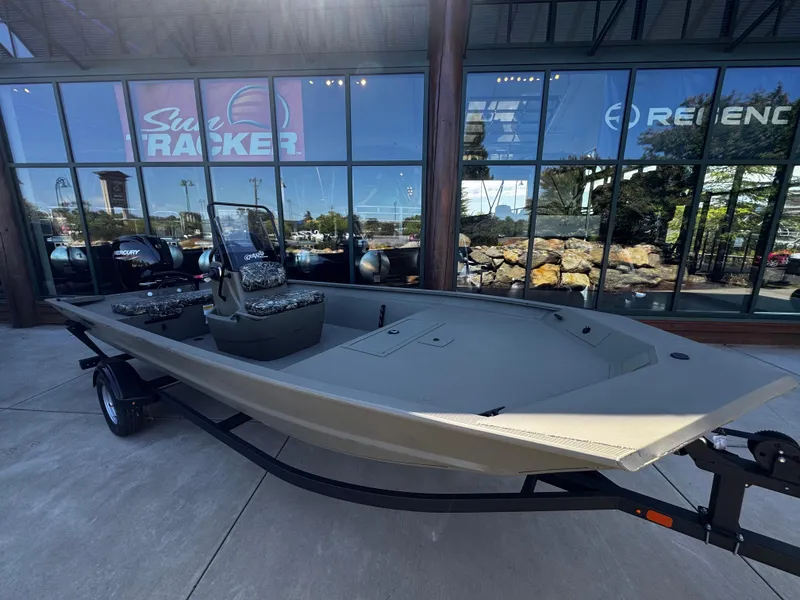 Venture into the unknown with the TRACKER® GRIZZLY® 1860 CC, a robust and versatile all-purpose jon boat designed to conquer various water environments, from rivers to lakes to bays. With its durable, all-welded construction, this boat is equipped to handle any adventure you throw its way. The innovative center-console design not only provides 360° fishability but also offers enhanced visibility for the driver, crucial for navigating through shallow waters cluttered with stumps and rocks. Whether you're casting a line or cruising the waters, the decks and floors of the 1860 CC are equipped with our textured SURE TREAD™ coating, ensuring a secure and non-skid surface for your safety and comfort. The unitized stringer, transom, and Mod V hull construction of this boat guarantee a solid and stable ride, delivering an experience that is both smooth and dry. Finished with our exclusive Forest Green powder-coat finish, the GRIZZLY 1860 CC not only looks sleek but also offers superior protection against corrosion and wear. For those looking to personalize their vessel further, optional TrueTimber patterns and a Marine Mat kit are available, allowing you to tailor your boat to your preferences and style. With the added assurance of the TRACKER PROMISE, featuring the best factory warranty in aluminum boats, the GRIZZLY 1860 CC is a reliable and dependable choice for all your boating adventures.