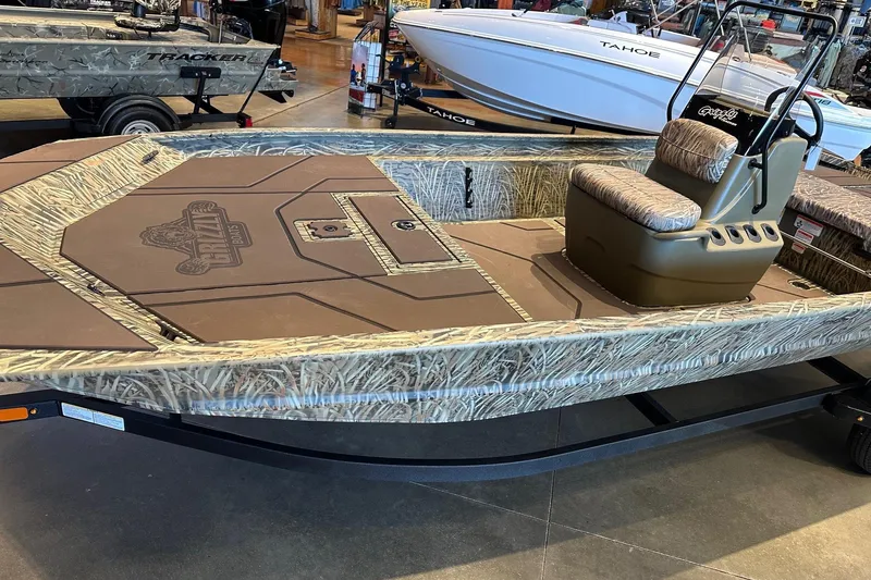 Venture into the unknown with the TRACKER® GRIZZLY® 1860 CC, a robust and versatile all-purpose jon boat designed to conquer various water environments, from rivers to lakes to bays. With its durable, all-welded construction, this boat is equipped to handle any adventure you throw its way. The innovative center-console design not only provides 360° fishability but also offers enhanced visibility for the driver, crucial for navigating through shallow waters cluttered with stumps and rocks. Whether you're casting a line or cruising the waters, the decks and floors of the 1860 CC are equipped with our textured SURE TREAD™ coating, ensuring a secure and non-skid surface for your safety and comfort. The unitized stringer, transom, and Mod V hull construction of this boat guarantee a solid and stable ride, delivering an experience that is both smooth and dry. Finished with our exclusive Forest Green powder-coat finish, the GRIZZLY 1860 CC not only looks sleek but also offers superior protection against corrosion and wear. For those looking to personalize their vessel further, optional TrueTimber patterns and a Marine Mat kit are available, allowing you to tailor your boat to your preferences and style. With the added assurance of the TRACKER PROMISE, featuring the best factory warranty in aluminum boats, the GRIZZLY 1860 CC is a reliable and dependable choice for all your boating adventures.
