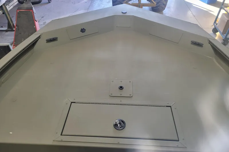 - Trolling motor mounting surface along bow edge