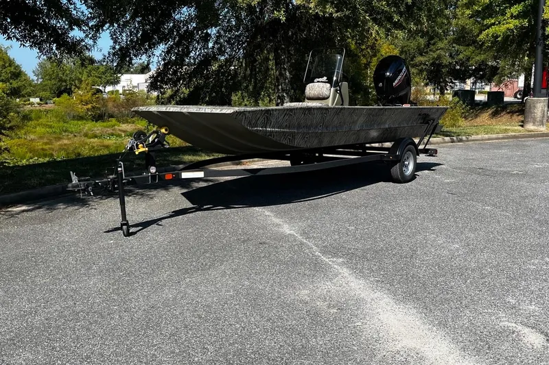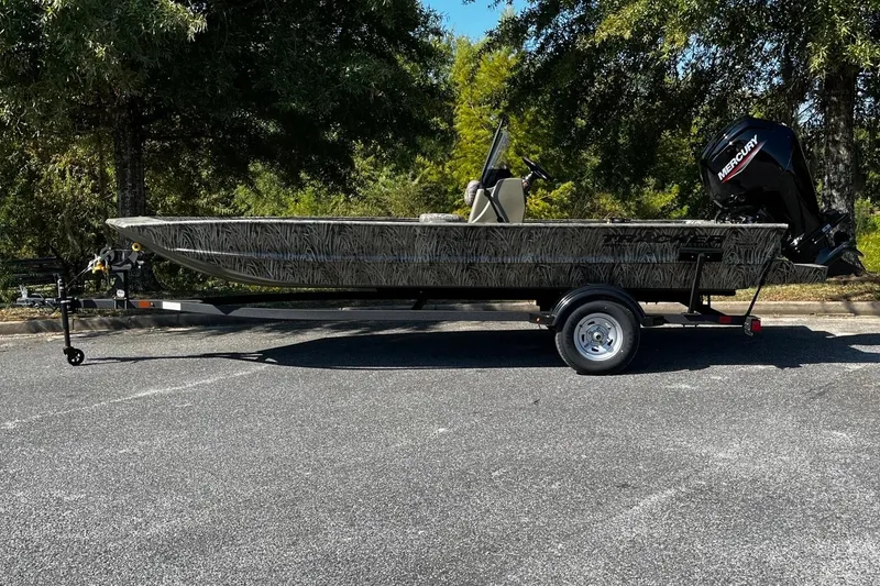 Venture into the unknown with the TRACKER® GRIZZLY® 1860 CC, a robust and versatile all-purpose jon boat designed to conquer various water environments, from rivers to lakes to bays. With its durable, all-welded construction, this boat is equipped to handle any adventure you throw its way. The innovative center-console design not only provides 360° fishability but also offers enhanced visibility for the driver, crucial for navigating through shallow waters cluttered with stumps and rocks. Whether you're casting a line or cruising the waters, the decks and floors of the 1860 CC are equipped with our textured SURE TREAD™ coating, ensuring a secure and non-skid surface for your safety and comfort. The unitized stringer, transom, and Mod V hull construction of this boat guarantee a solid and stable ride, delivering an experience that is both smooth and dry. Finished with our exclusive Forest Green powder-coat finish, the GRIZZLY 1860 CC not only looks sleek but also offers superior protection against corrosion and wear. For those looking to personalize their vessel further, optional TrueTimber patterns and a Marine Mat kit are available, allowing you to tailor your boat to your preferences and style. With the added assurance of the TRACKER PROMISE, featuring the best factory warranty in aluminum boats, the GRIZZLY 1860 CC is a reliable and dependable choice for all your boating adventures.