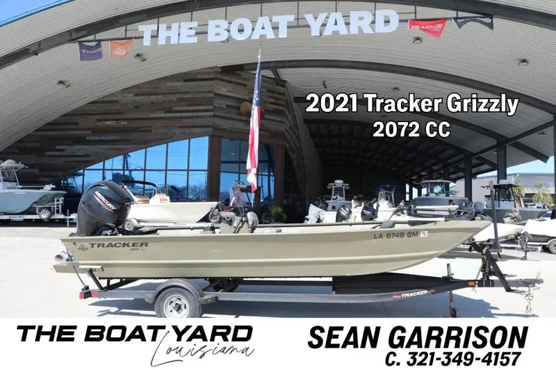 2021 TRACKER GRIZZLY 2072 — Ultimate Utility RigCondition: Pre-owned Location: The Boat YardThis all-welded, wood-free powerhouse is rigged for serious fishing and hunting. Built with a .100 5052 marine alloy hull and a reinforced .190 floor, it’s designed to handle everything from shallow marshes to big-water chop.Premium Power & PerformanceEngine: Mercury 150HP FourStroke Outboard. This is the maximum recommended horsepower for this hull, providing unmatched speed and range.Trolling: Minn Kota Trolling Motor Advanced Electronics & LightingNavigation: Garmin GPS/Fishfinder. Integrated at the console for high-resolution mapping and sonar tracking.Visibility: Custom-mounted Bar Flood Light. Replaces or augments standard lighting for superior nighttime navigation or early-morning setup.Hull & Interior FeaturesDimensions: 21' 5' length with a wide 8' 3' beam for maximum stability.Storage: Lockable bow and aft deck storage compartments, plus integrated rod holders.Livewell: 15-gallon rotomolded, aerated bow livewell with rounded corners.Trailer SpecificationsType: Custom-fit, Single-Axle Trailer.Protection: Finished with GALVASHIELD Impact powder coating for corrosion and chip resistance.Features: Submersible LED lighting, heavy-duty winch, and carpeted bunks to protect the aluminum hull.
