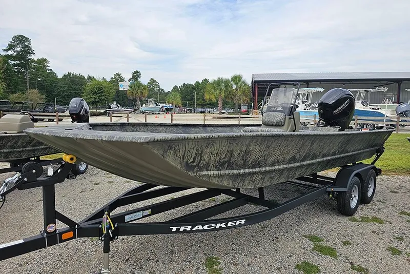 This Woodland Camo Tracker Grizzly 2072 CC has a MERCURY 150XL 4S outboard motor.