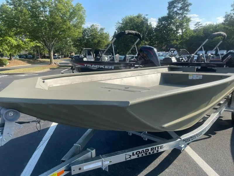 The TRACKER® GRIZZLY® 2072 UTILITY aluminum jon boat is spacious and stable, making it ideal for fishing, waterfowl hunting, bowfishing, or utility tasks. Measuring 21'5" in length and 8'3" in width, it can easily transport items such as deer feeders and coolers, providing the stability that only a larger boat can offer. Like all GRIZZLY UTILITY boats, the 2072 features a durable .100 aluminum cockpit floor and a spacious front deck, both equipped with SURE TREAD™ coating for enhanced safety. Its 7° deadrise Mod V hull ensures a smooth and dry ride, finished in our exclusive Forest Green powder coat. Additionally, as with all TRACKER boats, it comes with the TRACKER PROMISE, which offers the best factory warranty available for aluminum boats.