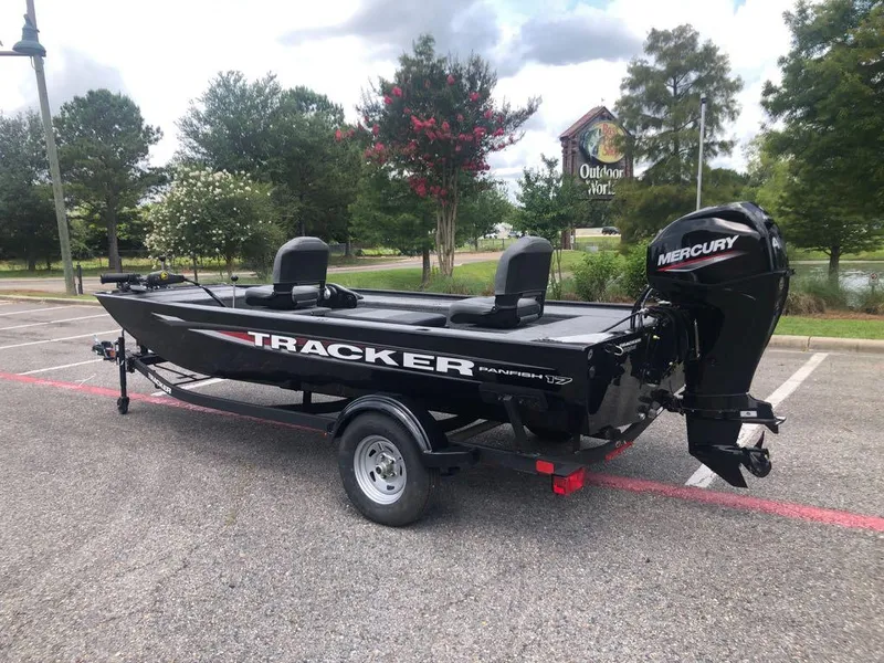 The all-new TRACKER Panfish 17 is a stick steer rig that's tailor-made for crappie, bream, and bluegill lovers, with features and a clever layout that appeals to anglers of every stripe. We started with premium marine-grade aluminum, robotically cut out the critical infrastructure for maximum accuracy and then use state-of-the-art equipment and passionate craftsmen to bring the rock-solid, all-welded hull to life.