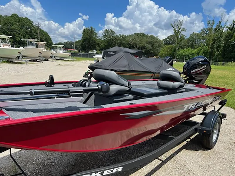 This Red Tracker Panfish 17 has a MERCURY 40 ELPT 4S EFI outboard motor.