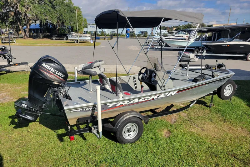 The TRACKER® Pro 160 is a versatile aluminum fishing boat that's packed with everything you need to go straight from the dealer to the lake. And it's built tough, with many of the quality construction features found in its bigger bass boat brothers.