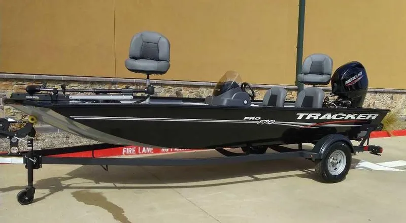 Like all TRACKER® boats, the PRO 170 comes outfitted with a Mercury® outboard, Minn Kota® trolling motor and Lowrance® fish finder, as well as an aerated live well, VERSATRACK® accessory-mounting channels and more!