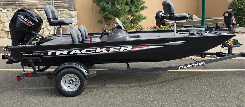 The TRACKER® PRO 170 is meticulously designed to strike the perfect blend of ample fishing space, easy towing and storage convenience and a host of tournament-ready features. Featuring a Mercury® outboard motor, Minn Kota® Edge trolling motor, Garmin® Striker 4 color fishfinder, aerated livewell, VERSATRACK® accessory-mounting channels and more, this boat is loaded with the essentials for a productive outing. Each PRO 170 is built with meticulous quality for peace of mind and a lifetime of memories and features rich, durable color from our next-gen DIAMOND COAT 3.0 paint process that stays vibrant with minimal upkeep. From its thoughtful design to its comprehensive features, the PRO 170 is a testament to TRACKER's commitment to providing anglers with the tools they need for success on the water. Cast with confidence with the TRACKER® PRO 170 under your feet.