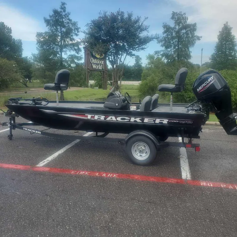 The TRACKER® PRO 170 is meticulously designed to strike the perfect blend of ample fishing space, easy towing and storage convenience and a host of tournament-ready features. Featuring a Mercury® outboard motor, Minn Kota® Edge trolling motor, Garmin® Striker 4 color fishfinder, aerated livewell, VERSATRACK® accessory-mounting channels and more, this boat is loaded with the essentials for a productive outing. Each PRO 170 is built with meticulous quality for peace of mind and a lifetime of memories and features rich, durable color from our next-gen DIAMOND COAT 3.0 paint process that stays vibrant with minimal upkeep. From its thoughtful design to its comprehensive features, the PRO 170 is a testament to TRACKER's commitment to providing anglers with the tools they need for success on the water. Cast with confidence with the TRACKER® PRO 170 under your feet.