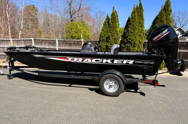 The TRACKER® PRO 170 is meticulously designed to strike the perfect blend of ample fishing space, easy towing and storage convenience and a host of tournament-ready features. Featuring a Mercury® outboard motor, Minn Kota® Edge trolling motor, Garmin® Striker 4 color fishfinder, aerated livewell, VERSATRACK® accessory-mounting channels and more, this boat is loaded with the essentials for a productive outing. Each PRO 170 is built with meticulous quaity for peace of mind and a lifetime of memories and features rich, durable color from our next-gen DIAMOND COAT 3.0 paint process that stays vibrant with minimal upkeep. From its thoughtful design to its comprehensive features, the PRO 170 is a testament to TRACKER's commitment to providing anglers with the tools they need for success on the water. Cast with confidence with the TRACKER® PRO 170 under your feet.