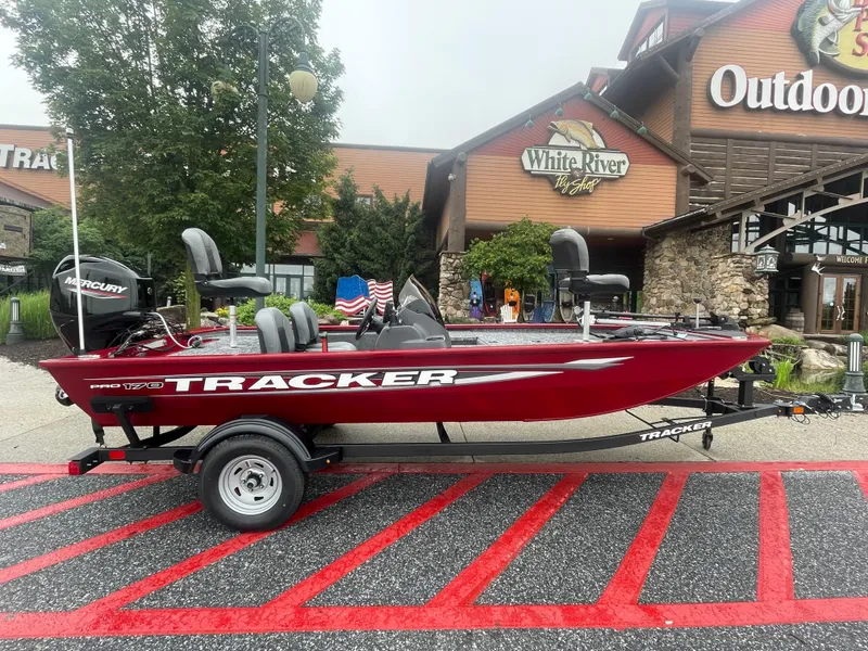 The TRACKER® PRO 170 is meticulously designed to strike the perfect blend of ample fishing space, easy towing and storage convenience and a host of tournament-ready features. Featuring a Mercury® outboard motor, Minn Kota® Edge trolling motor, Garmin® Striker 4 color fishfinder, aerated livewell, VERSATRACK® accessory-mounting channels and more, this boat is loaded with the essentials for a productive outing. Each PRO 170 is built with meticulous quaity for peace of mind and a lifetime of memories and features rich, durable color from our next-gen DIAMOND COAT 3.0 paint process that stays vibrant with minimal upkeep. From its thoughtful design to its comprehensive features, the PRO 170 is a testament to TRACKER's commitment to providing anglers with the tools they need for success on the water. Cast with confidence with the TRACKER® PRO 170 under your feet.