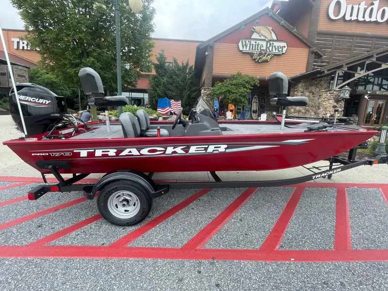 The TRACKER® PRO 170 is meticulously designed to strike the perfect blend of ample fishing space, easy towing and storage convenience and a host of tournament-ready features. Featuring a Mercury® outboard motor, Minn Kota® Edge trolling motor, Garmin® Striker 4 color fishfinder, aerated livewell, VERSATRACK® accessory-mounting channels and more, this boat is loaded with the essentials for a productive outing. Each PRO 170 is built with meticulous quaity for peace of mind and a lifetime of memories and features rich, durable color from our next-gen DIAMOND COAT 3.0 paint process that stays vibrant with minimal upkeep. From its thoughtful design to its comprehensive features, the PRO 170 is a testament to TRACKER's commitment to providing anglers with the tools they need for success on the water. Cast with confidence with the TRACKER® PRO 170 under your feet.