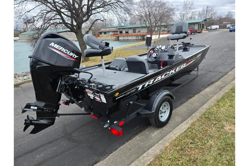 2025 Like New Tracker Pro 170 that comes with: 50 h.p. Mercury ELPT with ONLY 1.2 Hours, 45 lb. Minn Kota Edge Trolling Motor, Livewell, and more.