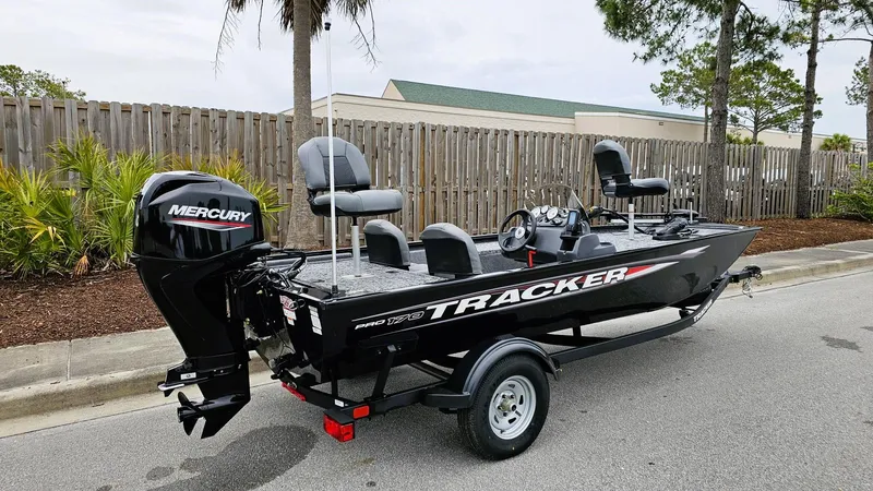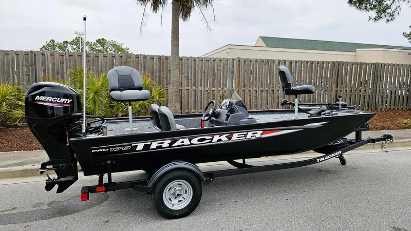 The TRACKER® PRO 170 is meticulously designed to strike the perfect blend of ample fishing space, easy towing and storage convenience and a host of tournament-ready features. Featuring a Mercury® outboard motor, Minn Kota® Edge trolling motor, Garmin® Striker 4 color fishfinder, aerated livewell, VERSATRACK® accessory-mounting channels and more, this boat is loaded with the essentials for a productive outing. Each PRO 170 is built with meticulous quaity for peace of mind and a lifetime of memories and features rich, durable color from our next-gen DIAMOND COAT 3.0 paint process that stays vibrant with minimal upkeep. From its thoughtful design to its comprehensive features, the PRO 170 is a testament to TRACKER's commitment to providing anglers with the tools they need for success on the water. Cast with confidence with the TRACKER® PRO 170 under your feet.