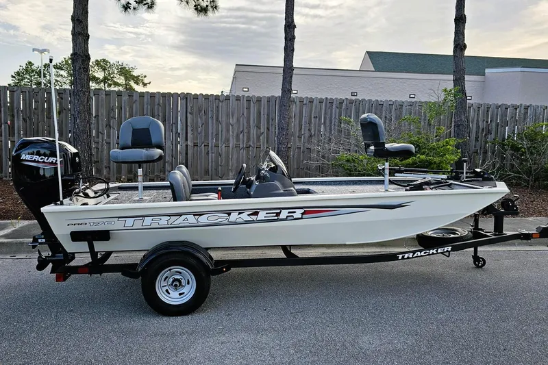 The TRACKER® PRO 170 is expertly crafted to offer a perfect balance of spacious fishing area, easy towing and storage, and a range of tournament-ready features. Equipped with a Mercury® outboard motor, Minn Kota® Edge trolling motor, Garmin® Striker 4 color fishfinder, aerated livewell, VERSATRACK® accessory-mounting channels, and more, this boat is packed with essential tools for a successful day on the water. Built with meticulous attention to quality, each PRO 170 provides peace of mind and durability, ensuring lasting memories. Its vibrant, durable finish is achieved through our next-generation DIAMOND COAT 3.0 paint process, which maintains its brilliance with minimal maintenance. From its thoughtful design to its comprehensive features, the PRO 170 exemplifies TRACKER's dedication to equipping anglers for success. Cast with confidence-your adventure begins with the TRACKER® PRO 170 beneath you.