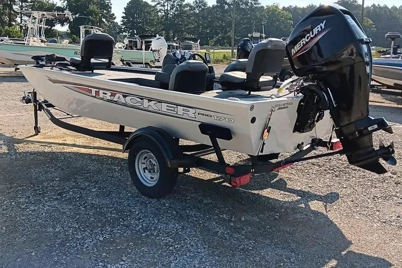 The TRACKER® PRO 170 is meticulously designed to strike the perfect blend of ample fishing space, easy towing and storage convenience and a host of tournament-ready features. Featuring a Mercury® outboard motor, Minn Kota® Edge trolling motor, Garmin® Striker 4 color fishfinder, aerated livewell, VERSATRACK® accessory-mounting channels and more, this boat is loaded with the essentials for a productive outing. Each PRO 170 is built with meticulous quaity for peace of mind and a lifetime of memories and features rich, durable color from our next-gen DIAMOND COAT 3.0 paint process that stays vibrant with minimal upkeep. From its thoughtful design to its comprehensive features, the PRO 170 is a testament to TRACKER's commitment to providing anglers with the tools they need for success on the water. Cast with confidence with the TRACKER® PRO 170 under your feet.