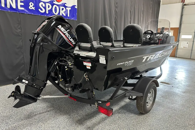 The TRACKER PRO GUIDE V-16SC delivers strength, space, and storage with huge value. The finely tuned hull is designed to slice through chop and track easily, making trolling a breeze. The front and rear deck are made with casting in mind and both are covered in a premium non-slip marine-grade vinyl for easy clean up. Storage compartments are tucked in every corner of the V-16SC to keep all your gear both secure and close at hand. Underneath is a custom-matched trailer designed just for the hull that rides on it. The PRO GUIDE V-16SC isn't just a boat; it's the key to maximizing your next great fishing adventure.