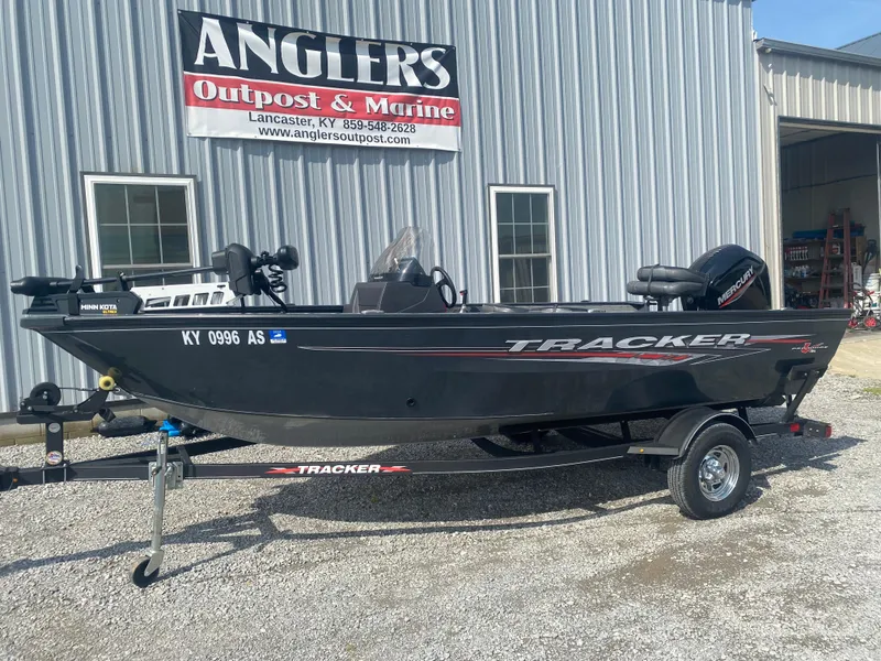 This one is powered by the reliable and powerful 90 Mercury 4 stroke. It also has the spot lock capable Minnkota Ultrex TM, 4 blade stainless prop, Garmin 9 inch depth finder @ console, and 5 person capacity. Grab some friends and lets go fishing this summer in your new Tracker.