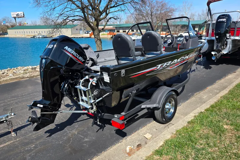 2024 Tracker Pro Guide V-16 WT comes with: 60 hp Mercury ELPT with ONLY 17 Hours, 42 lb Minn-Kota Powerdrive, Custom Cover, Rod Lockers, and more.