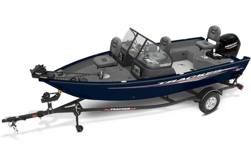 New Tracker Pro Guide V 16 WT with Mercury 60 HP and matched trailer. Optioned from the factory with the woven floor upgrade.