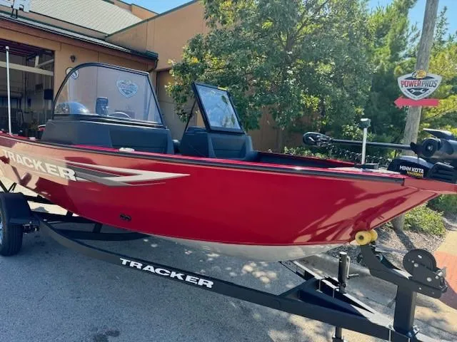 The TRACKER PRO GUIDE V-16 WT packs a punch in a compact, Deep V hull design. The walk-thru windshield shields you from the elements, ensuring comfort in all conditions. With three fishing seats and six customizable setups, the PRO GUIDE V-16 WT is ready for your whole crew. The Deep V hull is designed for smooth, dry performance and peak edge-to-edge stability. It has space galore, so you can haul all your gear with ease. Up front is a standard Minn Kota trolling motor with a livewell/baitwell and twin storage boxes while the console features a Garmin Striker 4 color fishfinder with a full gauge setup and smooth, reliable steering. Rounding out the package are a custom-fitted trailer and reliable, economical four stroke Mercury power.