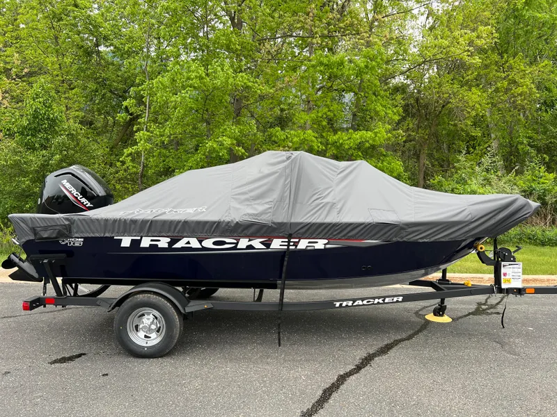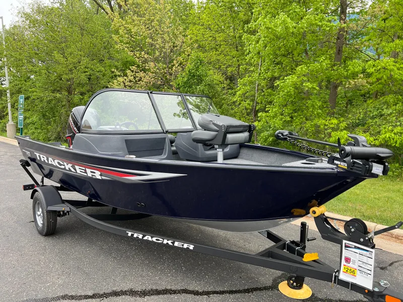 The TRACKER PRO GUIDE V-16 WT packs a punch in a compact, Deep V hull design. The walk-thru windshield shields you from the elements, ensuring comfort in all conditions. With three fishing seats and six customizable setups, the PRO GUIDE V-16 WT is ready for your whole crew. The Deep V hull is sdesigned for smooth, dry performance and peak edge-to-edge stability. It has space galore, so you can haul all your gear with ease. Up front is a standard Minn Kota trolling motor with a livewell/baitwell and twin storage boxes while the console features a Garmin Striker 4 color fishfinder with a full gauge setup and smooth, reliable steering. Rounding out the package are a custom-fitted trailer and reliable, economical four stroke Mercury power.