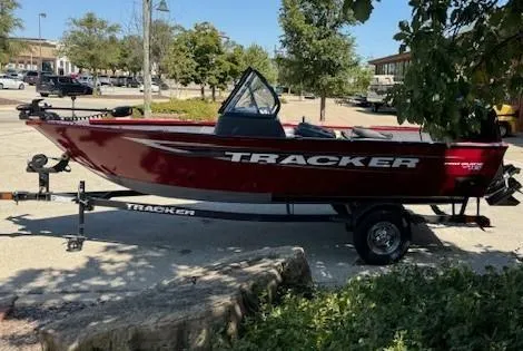 The TRACKER PRO GUIDE V-16 WT packs a punch in a compact, Deep V hull design. The walk-thru windshield shields you from the elements, ensuring comfort in all conditions. With three fishing seats and six customizable setups, the PRO GUIDE V-16 WT is ready for your whole crew. The Deep V hull is sdesigned for smooth, dry performance and peak edge-to-edge stability. It has space galore, so you can haul all your gear with ease. Up front is a standard Minn Kota trolling motor with a livewell/baitwell and twin storage boxes while the console features a Garmin Striker 4 color fishfinder with a full gauge setup and smooth, reliable steering. Rounding out the package are a custom-fitted trailer and reliable, economical four stroke Mercury power.