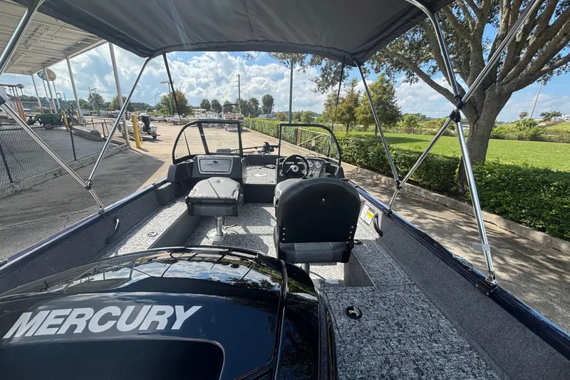 The TRACKER PRO GUIDE V-16 WT packs a punch in a compact, Deep V hull design. The walk-thru windshield shields you from the elements, ensuring comfort in all conditions. With three fishing seats and six customizable setups, the PRO GUIDE V-16 WT is ready for your whole crew. The Deep V hull is designed for smooth, dry performance and peak edge-to-edge stability. It has space galore, so you can haul all your gear with ease. Up front is a standard Minn Kota trolling motor with a livewell/baitwell and twin storage boxes while the console features a Garmin Striker 4 color fishfinder with a full gauge setup and smooth, reliable steering. Rounding out the package are a custom-fitted trailer and reliable, economical four stroke Mercury power.