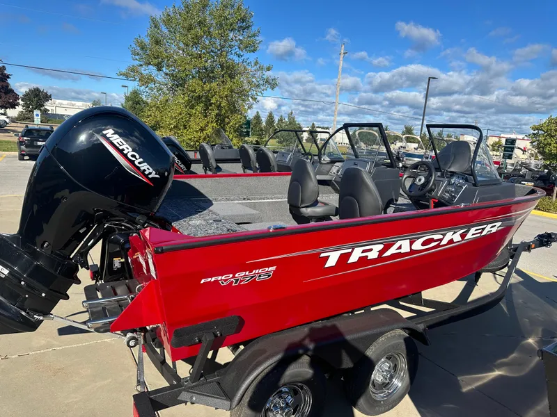 Whether the day calls for fishing, tubing, skiing, cruising or all of the above, the TRACKER PRO GUIDE™ V-175 Combo delivers the versatility and amenities to make it happen. Measuring 17' 7" in length and 8' 1" in width, the V-175 Combo has exceptional stability for cruising and casting. Storage is perfect for rods and tackle or watersports gear. A growling Mercury® FourStroke engine has the pep to knock down rollers and pop up a wakeboarder with ease. The back deck serves as a solid casting platform when down, and when up adds a pair of seats covered in premium marine-grade vinyl. The console is shrouded by a wraparound walk-thru windshield and carries a full complement of gauges, a fishfinder, and easy, responsive steering. Whether you're a seasoned angler or a family looking for a versatile watercraft, the TRACKER PRO GUIDE™ V-175 Combo delivers on both performance and comfort, making it a popular choice among all water lovers.