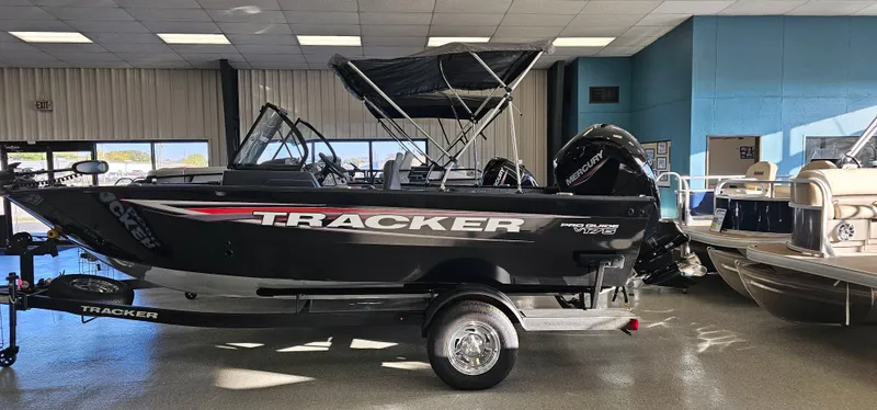 At 17' 7" long, the TRACKER® PRO GUIDE™ V-175 WT is bursting with strength and stability or peace of mind in all weather. With its generous beam, this boat provides ample space for anglers to move around comfortably while casting or trolling. The boat boasts a 48-gallon timed, aerated live well to keep your catch spunky. Additionally, the PRO GUIDE V-175 WT offers extensive storage options from dedicated rod holders to tackle stows to a convenient console glove box. A stout Mercury outboard delivers instant acceleration, while the Garmin® Striker 4 fishfinder gives you detail on what's below. A Minn Kota® trolling motor provides stealthy motivation. The PRO GUIDE V-175 WT is backed by the TRACKER PROMISE-the industry's leading factory warranty for aluminum boats. This comprehensive warranty includes a lifetime hull/structure/deck warranty, along with 5 years of bow-to-stern coverage, providing reassurance for the long haul.